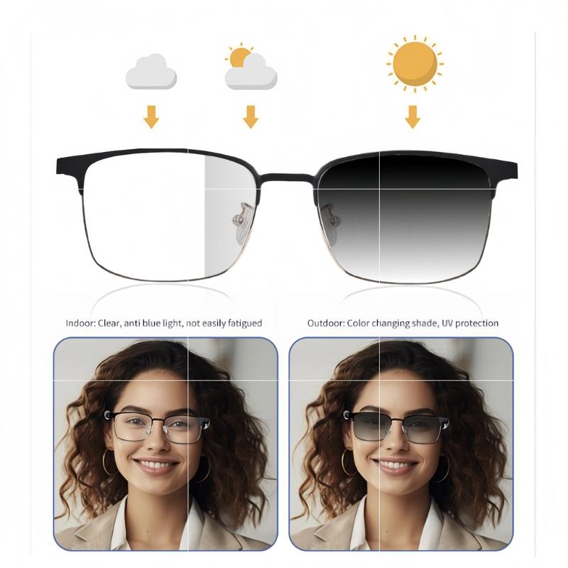 【Photochromic Lenses】: Includes photochromic lenses that automatically adjust to lighting conditions, providing optimal vision clarity in various environments.