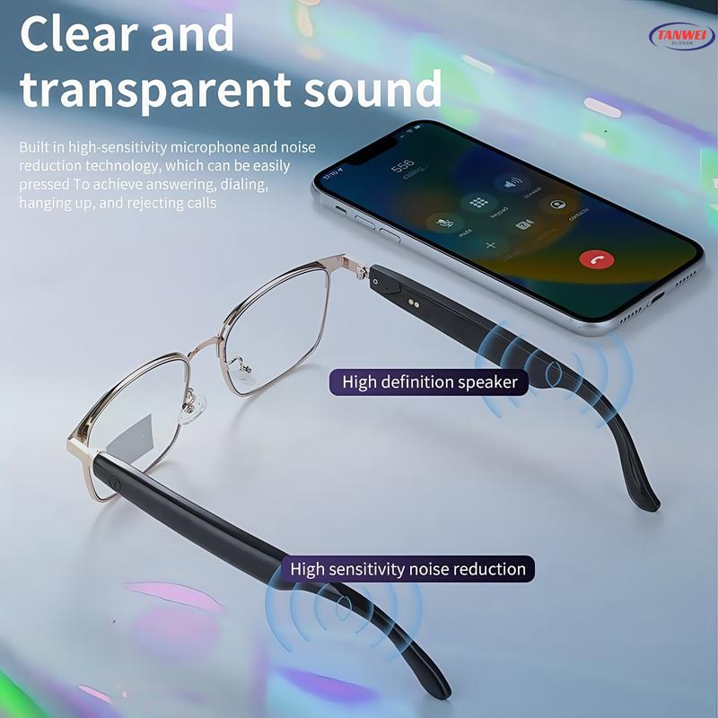 【Integrated Speakers】: Features Bluetooth-compatible-compatible speakers built into the glasses, enhancing the hands-free experience with audio accessibility.